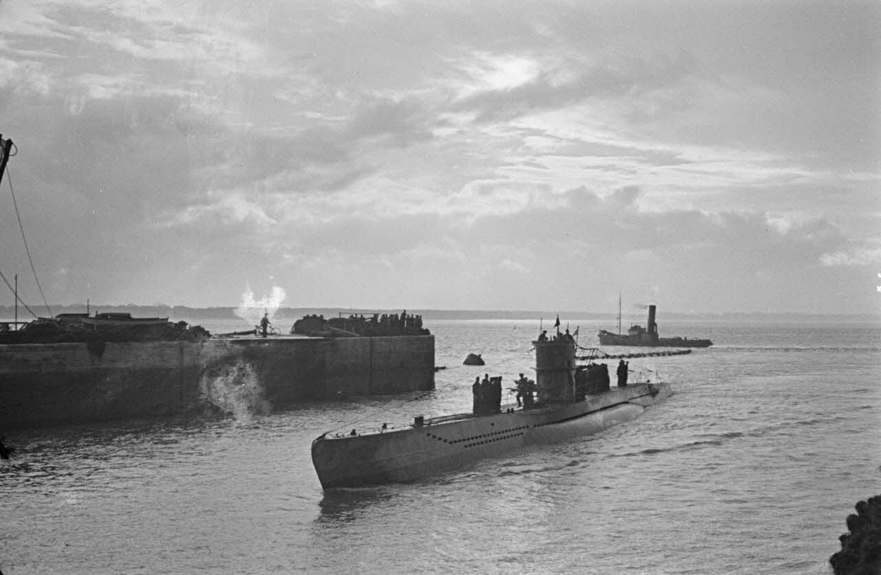 Le sous-marin U-93 rentre dans le port de Saint-Nazaire.