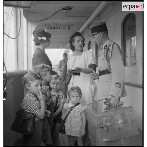 Arrivée d'un commandant des troupes coloniales et de sa famille à Marseille.