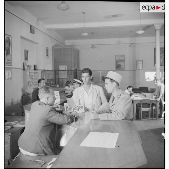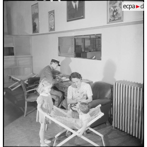 Le service social de l'armée : le service d' accueil de la base militaire de transit de Marseille (Bouches-du-Rhône).