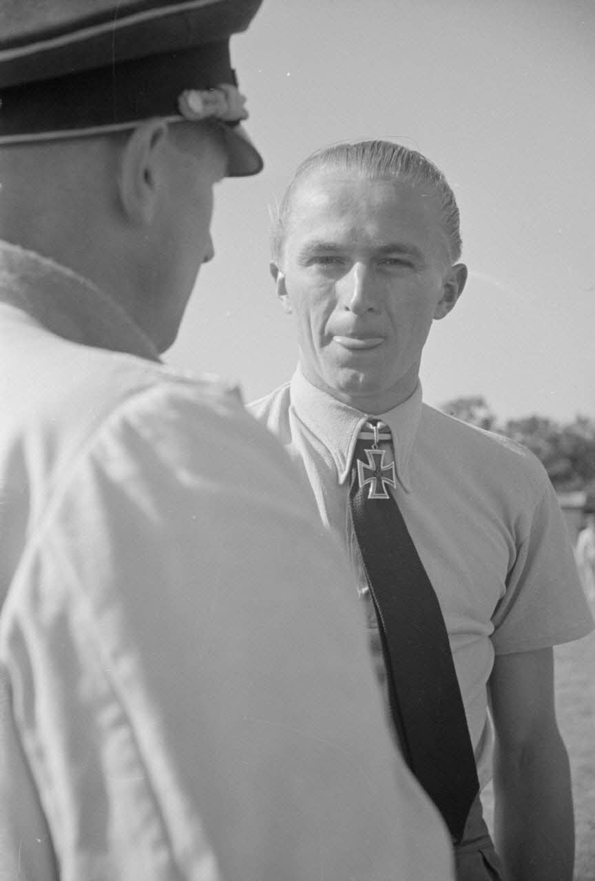 Note : Eberhard von Boremski obtient la croix de chevalier de la croix de fer (Ritterkreuz) le 03/05/1942, ce reportage se situe après cette date. Il pourrait s'agir de la date à laquelle Eberhard von Boremski et Georg Schentke sont nommés instructeurs au sein du Ergänzungsgruppe Süd. Ils retournent tous les deux au Jagdgeschwader 3 (JG 3) courant 1943. Georg Schentke est muté au Flugzeugführer 9. / Jagdgeschwader 3, le 24 septembre, il est décoré de la croix allemande en or (qui ne porte pas dans ce reportage), il meurt le 25 décembre 1942 à Pitomnik/Oblast Stalingrad.