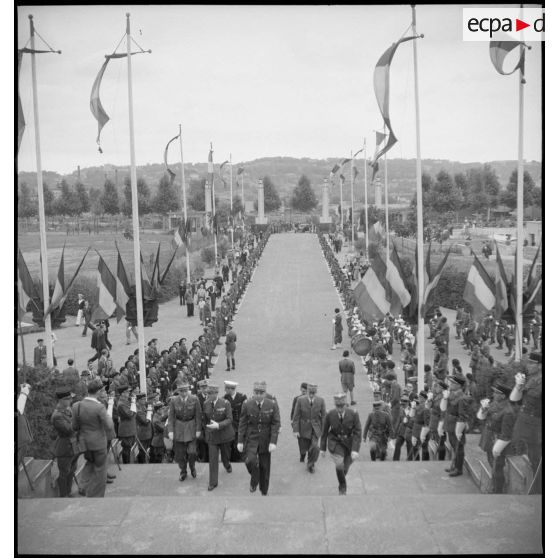 Le sport sert également de prétexte pour organiser de grandes manifestations solennelles, parfois présidées par le maréchal Pétain en personne. Lors de ces grands rassemblements ou manifestations sportives, l'image d'une armée moderne et d'élite est mise en avant : athlètes défilant et saluant les autorités le bras tendu, montée des couleurs, musique militaire...