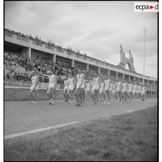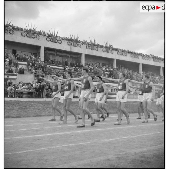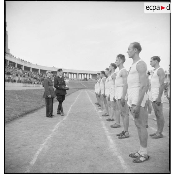 Le sport dans l'armée d'armistice : finale de la coupe de France militaire d'athlétisme à Lyon (Rhône).