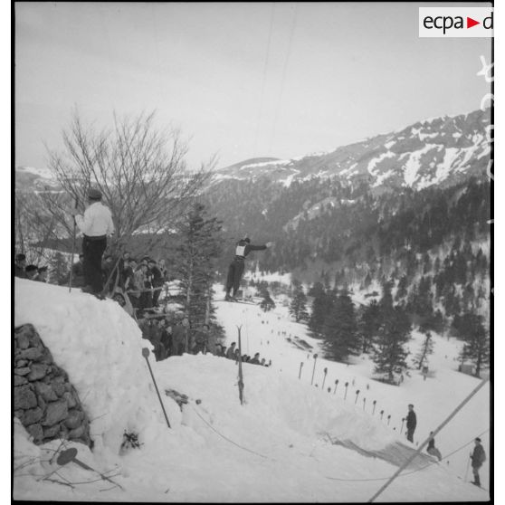 Le sport dans l'armée d'armistice : le concours interdivisionnaire de ski du 2e groupe de divisions militaires au Mont-Dore (Puy-de-Dôme).