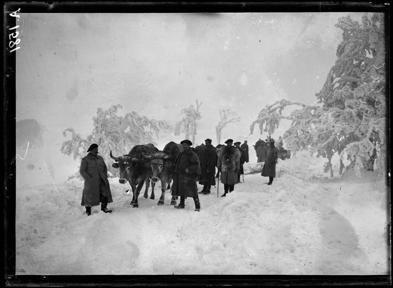 - Vues du camp installé au Tanet : camp, soldats, repos, repas, sentinelles, vie quotidienne, canons de 155 mm long, skieurs, traîneaux et chiens, convois, cuisine roulante.
