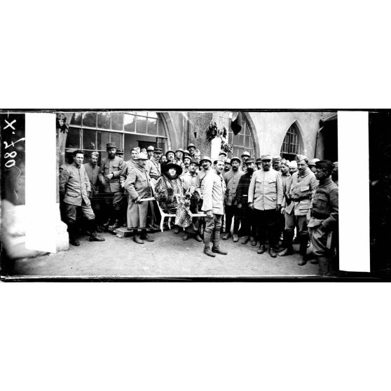 Dieulouard (Meurthe-et-Moselle). Le théâtre aux armées. Mme Sarah Bernhardt après la représentation donnée aux blessés de l'hôpital.