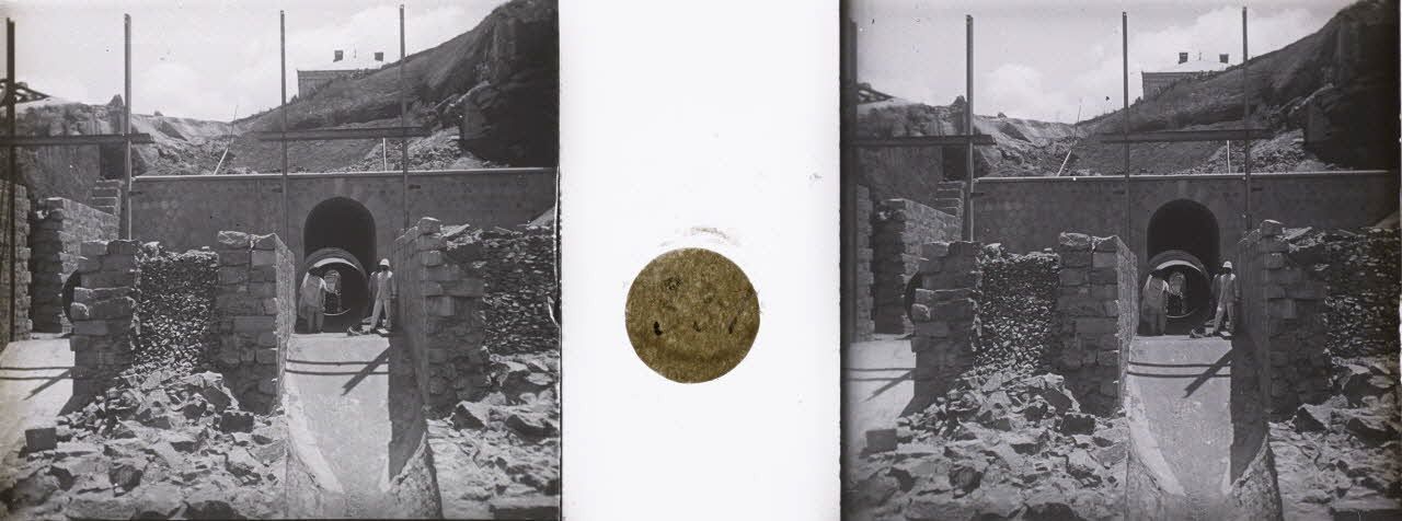 D68-32. René Denis photographie les paysages naturels malgaches lors de ses expéditions cartographiques dans la vallée de la Mandraka à l'est de Manjakandriana. Il circule alors avec deux tirailleurs et deux équipes de quatre bourjanes. Il photographie également le barrage d'Antelomito et son usine hydro-électrique.