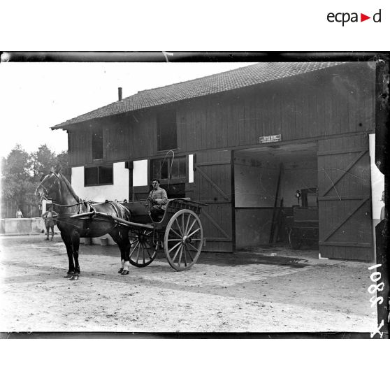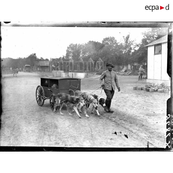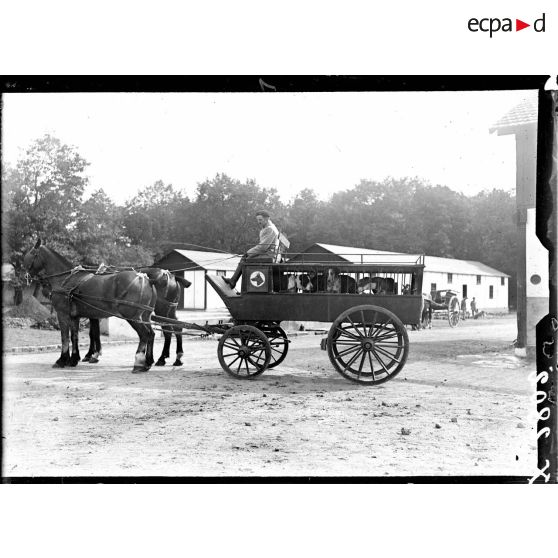 La voiture servant pour le transport des chiens du chenil militaire à l'hôpital.