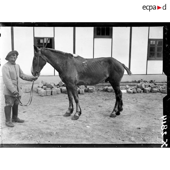 Un cheval en traitement au chenil militaire de Satory.