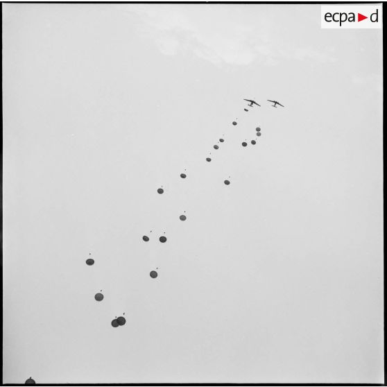 Parachutage lors d'une manœuvre en Oranie.