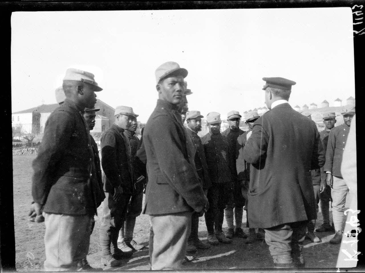 Bâtiments militaires dans la rade de Moudros ; soldats créoles ; décembre 1915.