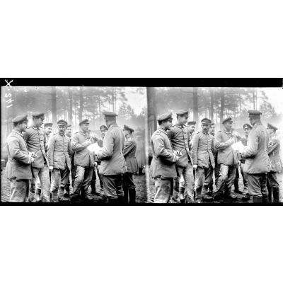 Forêt d'Orléans. Les Bordes. Camp de prisonniers. Appel des prisonniers allemands devant le baraquement.