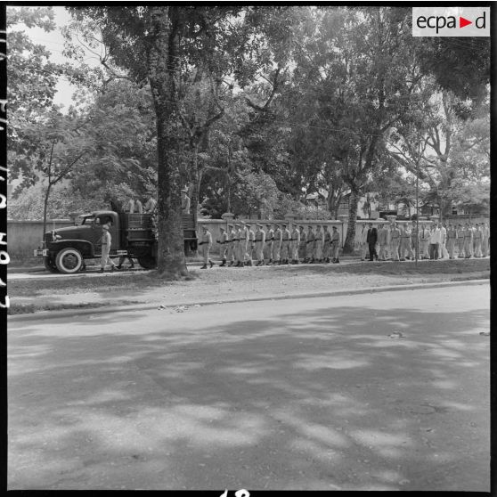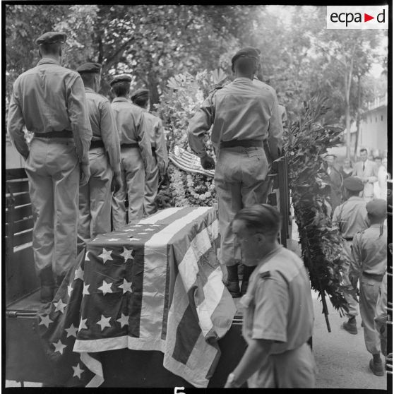 Le convoi funéraire des obsèques du reporter Robert Capa dans Hanoï.