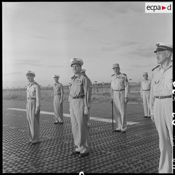Les autorités militaires sur la base aérienne de Bach Mai pour le départ du général Dechaux.