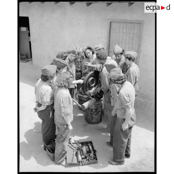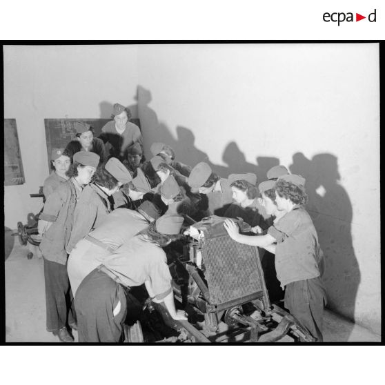 Exercices pratiques de mécanique à l'école de La Vigie en Algérie.