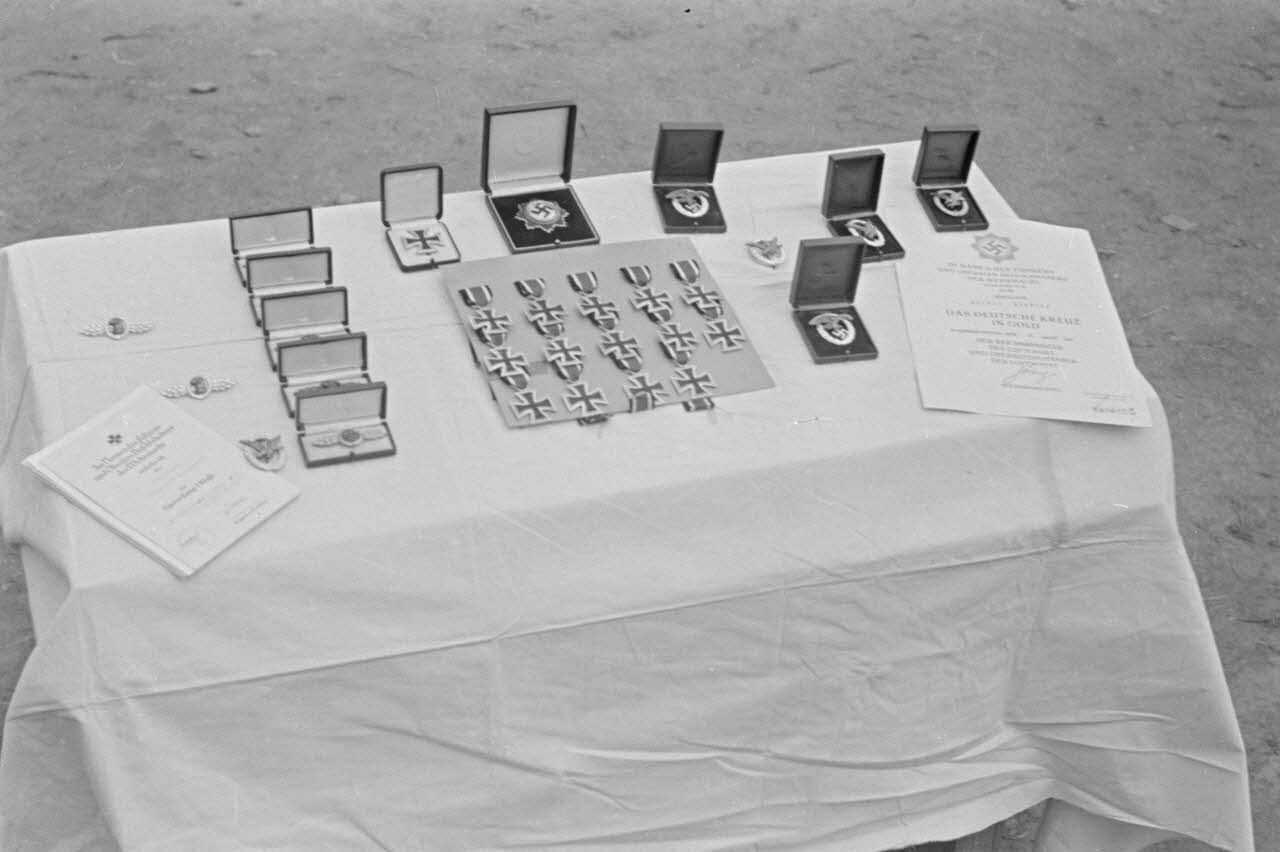 Les décorations allemandes à remettre lors d'une cérémonie militaire au sein du Aufklärungsgruppe 123.