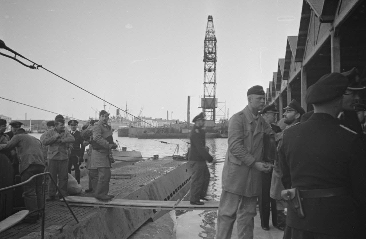 Présence (pas certaine) du sous-marin U-boot U-48 commandé par le capitaine (Kapitänleutnant) Herbert Schultze (DAM 849 L12 et L13). Le sous-marin U-boot U-97 commandé par le capitaine (Kapitänleutnant) Udo Heilmann accoste, l'équipage quitte le navire. On reconnaît l'emblème, un hippocampe, peint sur le kiosque (DAM 849 L14 à L19).