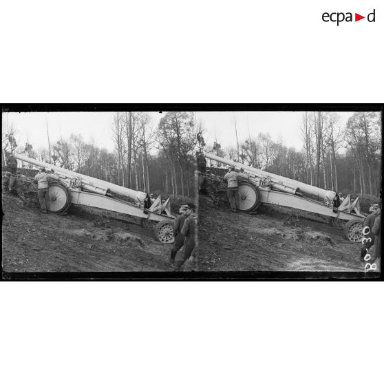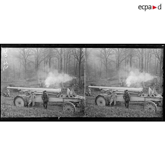 Les essais de traction d'un canon de 155 mm GPF à Saint-Cucufa.