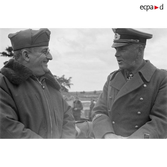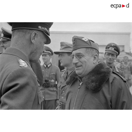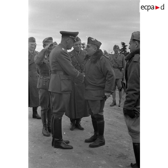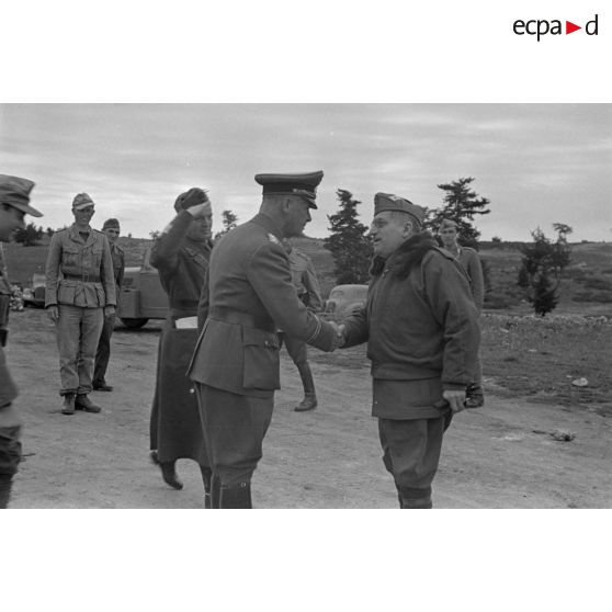 Le général d'armée Ugo Cavarello serre la main au général (General der Panzertruppe) Crüwell.