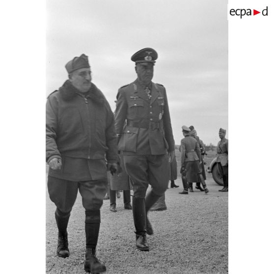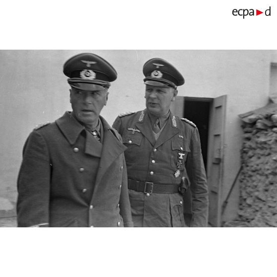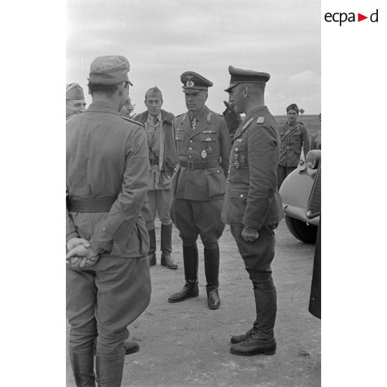 Le général italien Ugo Cavarello en conversation avec le général allemand Ludwig Crüwell.