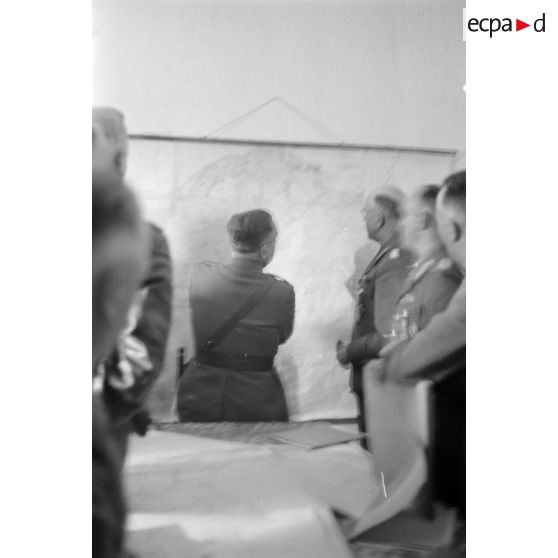 Réunion d'état-major entre les officiers supérieurs allemands et italiens.