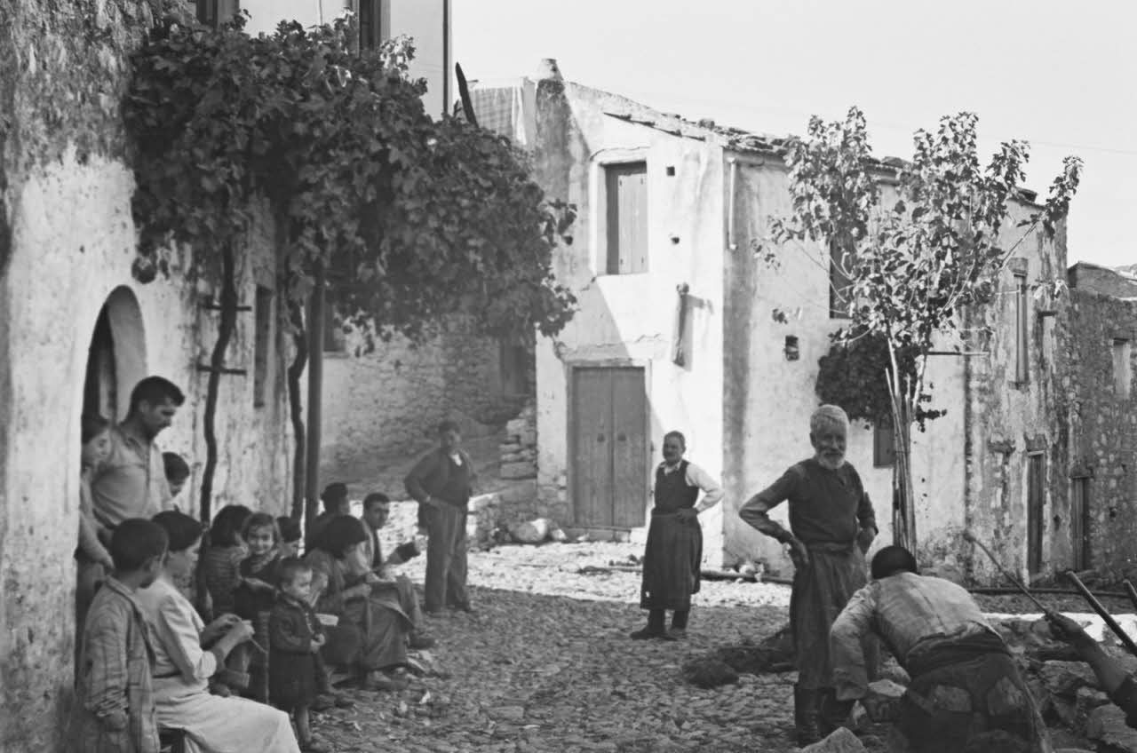 Les habitants de Xidas (Crète) devant leur maison.