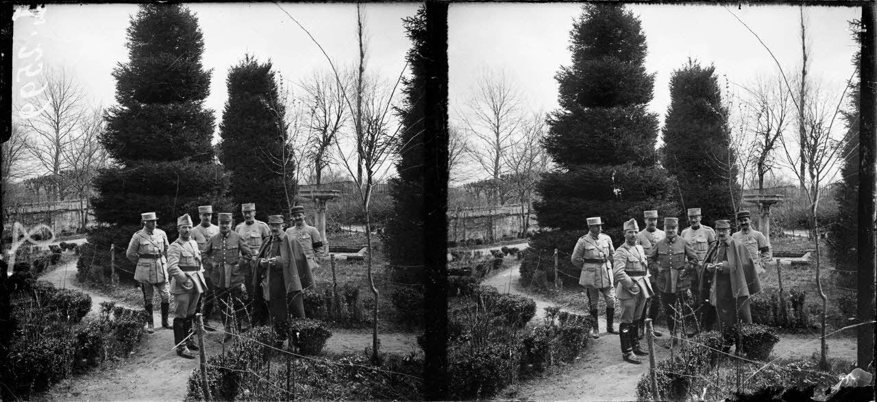 - au Four-de-Paris, des soldats dans une tranchée, en contre-bas la forêt détruite (SPA 55 L 2591), devant le PC (poste de commandement) du commandant Vielzeux, un fusil Lebel modèle 1886 modifié 1893 monté sur un socle en bois afin de l'utiliser comme lance-grenade (seul fusil apte à supporter le choc de départ), sans son accessoire (le Tromblon VB, Viven-Bessières, SPA 55 L 2592), le commandant Vielzeux et ses officiers près de la 3e tranchée (SPA 55 L 2593), une ferme et les fortifications adjacentes faites de gabions, SPA 55 L 2598 ;