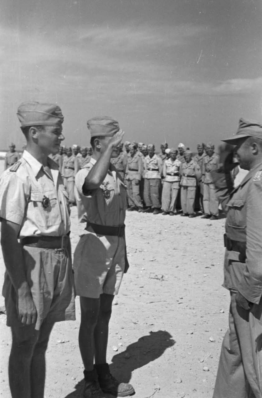 Le général (Generalmajor) Hans Seidemann préside la cérémonie de remise de la Ritterkreuz qui se déroule à Agag el Qasaba en Egypte.