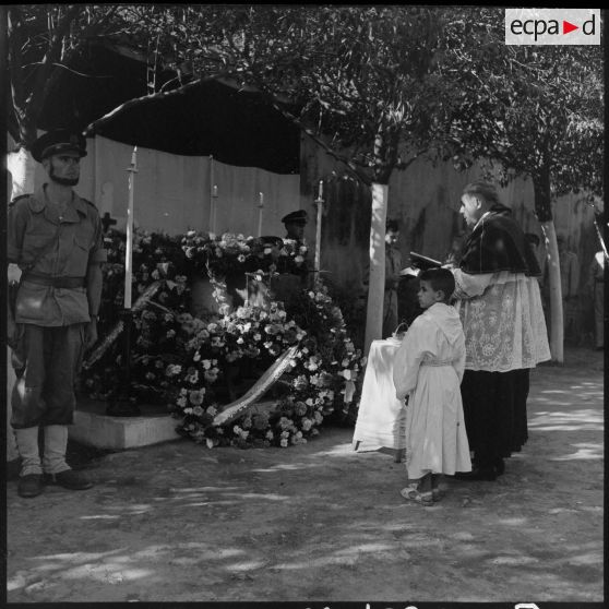 Bénédiction du cercueil de l'enseigne de vaisseau Le Troadec par un général de division.