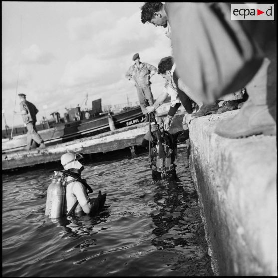Les plongeurs de la Marine nationale récupèrent les armes jetées dans le canal de Suez par les Egyptiens.