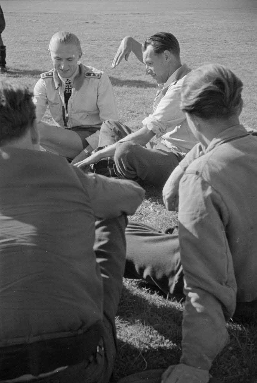 Note : Eberhard von Boremski obtient la croix de chevalier de la croix de fer (Ritterkreuz) le 03/05/1942, ce reportage se situe après cette date. Il pourrait s'agir de la date à laquelle Eberhard von Boremski et Georg Schentke sont nommés instructeurs au sein du Ergänzungsgruppe Süd. Ils retournent tous les deux au Jagdgeschwader 3 (JG 3) courant 1943. Georg Schentke est muté au Flugzeugführer 9. / Jagdgeschwader 3, le 24 septembre, il est décoré de la croix allemande en or (qui ne porte pas dans ce reportage), il meurt le 25 décembre 1942 à Pitomnik/Oblast Stalingrad.