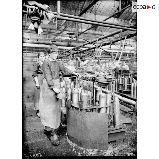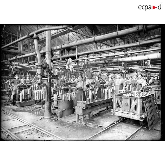 Lyon (Rhône). Usine Gillet Frères. Quai de Serin. Vérification des obus de 155. Juin 1917.