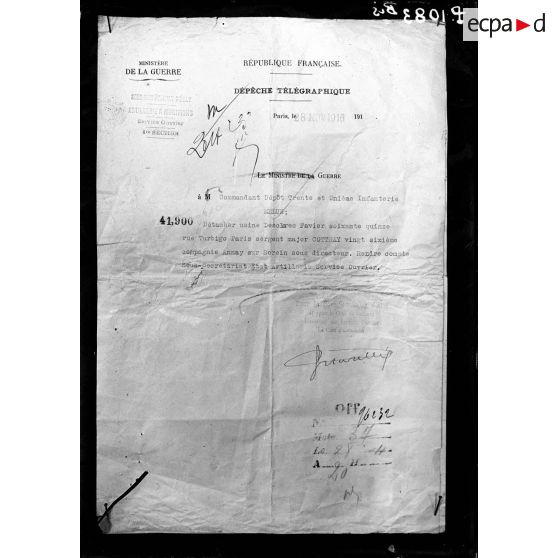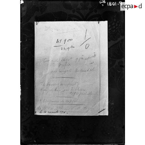 Dépêche télégraphique du 28 novembre 1916.