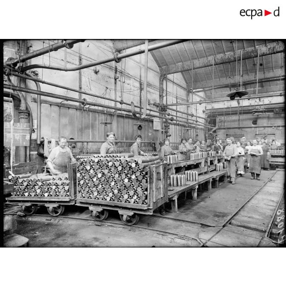 Lyon (Rhône). Usine Gillet Frères. Quai de Serin. Vernissage des obus de 75 (juin 1917).