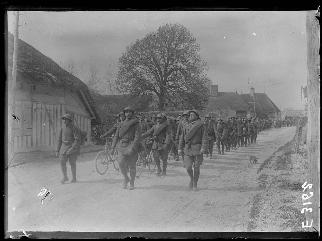 Lhuître. Aube. Arrivée de troupes italiennes. Une compagnie cycliste.