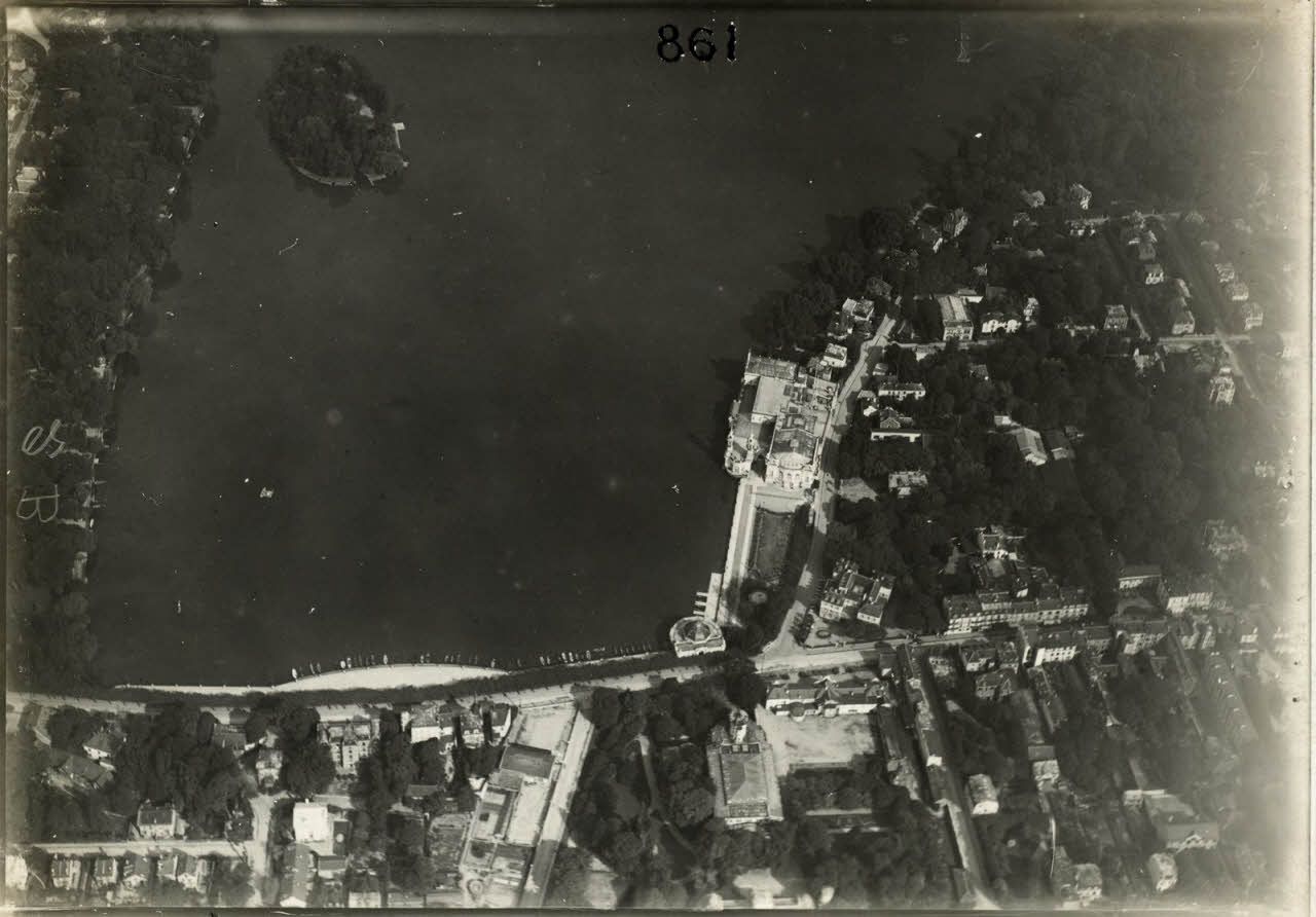 D169-16-32. Lieutenant Luc. Numéro 861 [Photographie aérienne du lac et du casino d'Enghien-les-Bains].