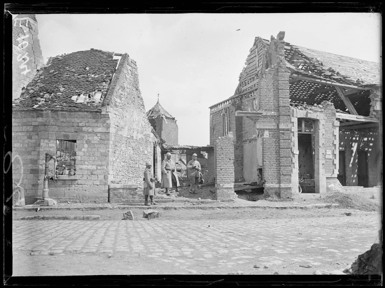 Lihons (Somme). Maisons en ruines (24.6.16). [légende d'origine]