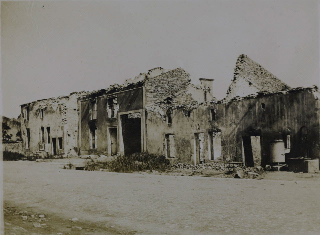 Les archives photographiques du médecin major Augarde (1869-1943), affecté au 138e régiment d''infanterie, sont caractéristiques de la production d''images fixzes des militaires pendant la Grande Guerre : portraits de camarades, ruines et terrains dévastés attestant des bombardements ennemis, etc. Les photographies cotées en D0349-002 correspondent à une série conditionnée dans une enveloppe intitulée "La Lorraine / Parrajou".