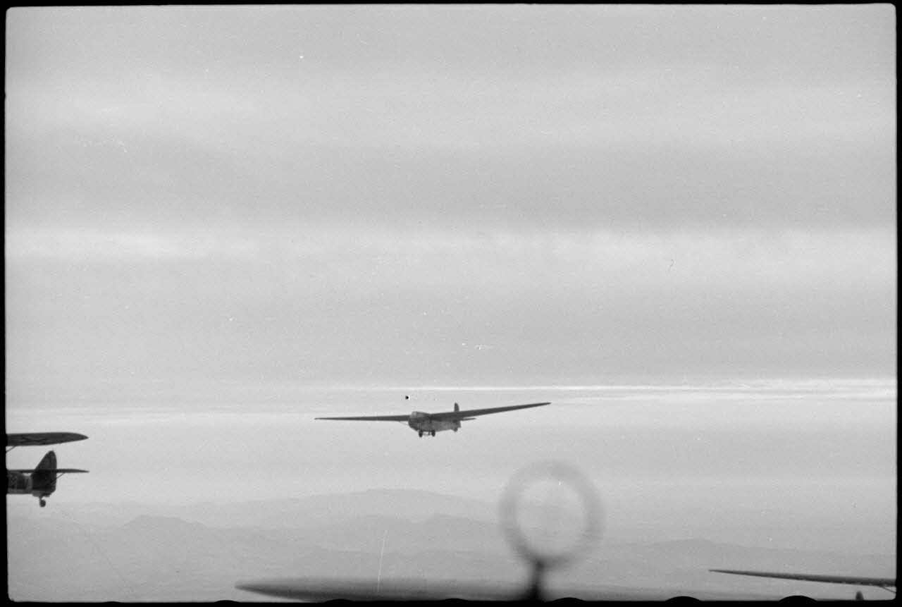 Au dessus de la Drôme, lors d'un exercice aéroporté, un Henschel Hs-126 utilisé comme remorqueur au sein du Luftlandegeschwader 1.