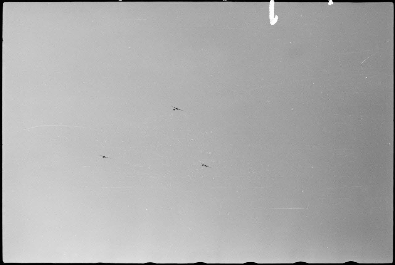 Lors d'une démonstration aéroportée sur le terrain d'aviation de Banak (Norvège), trois planeurs DFS-230 du Luftlandegeschwader 1 (8./LLG 1) amorcent leur descente, ils sont freinés par un parachute.