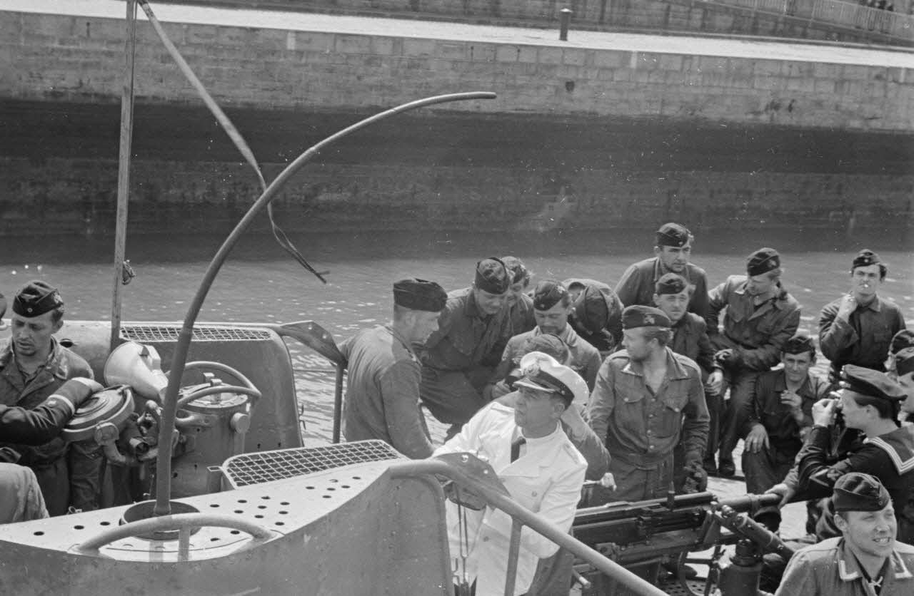 Dans le port de Saint-Nazaire, l'accueil réservé au commandant du sous-marin U-203, le Kapitänleutnant Rolf Mützelburg.