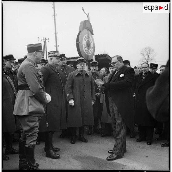 Lors de la cérémonie de don d'une ambulance le bourgmestre de Borinage fait un discours en présence de l'intendant général Mahaut.
