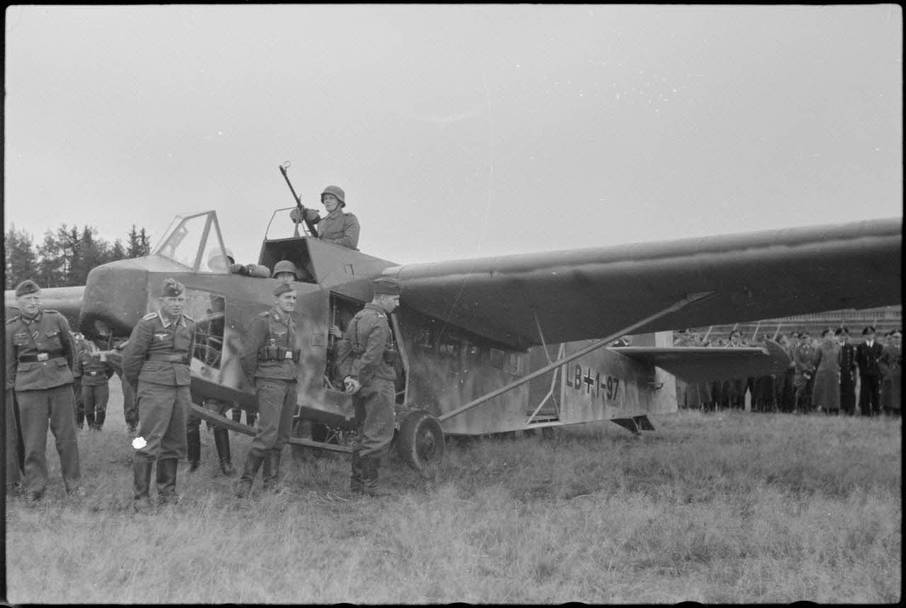 Lors de la démonstration aéroportée du Luftlandegeschwader 1 (8./LLG 1), un équipage de planeur DFS-230 immatriculé LB+1-97 reçoit des autorités de la Wehrmacht.