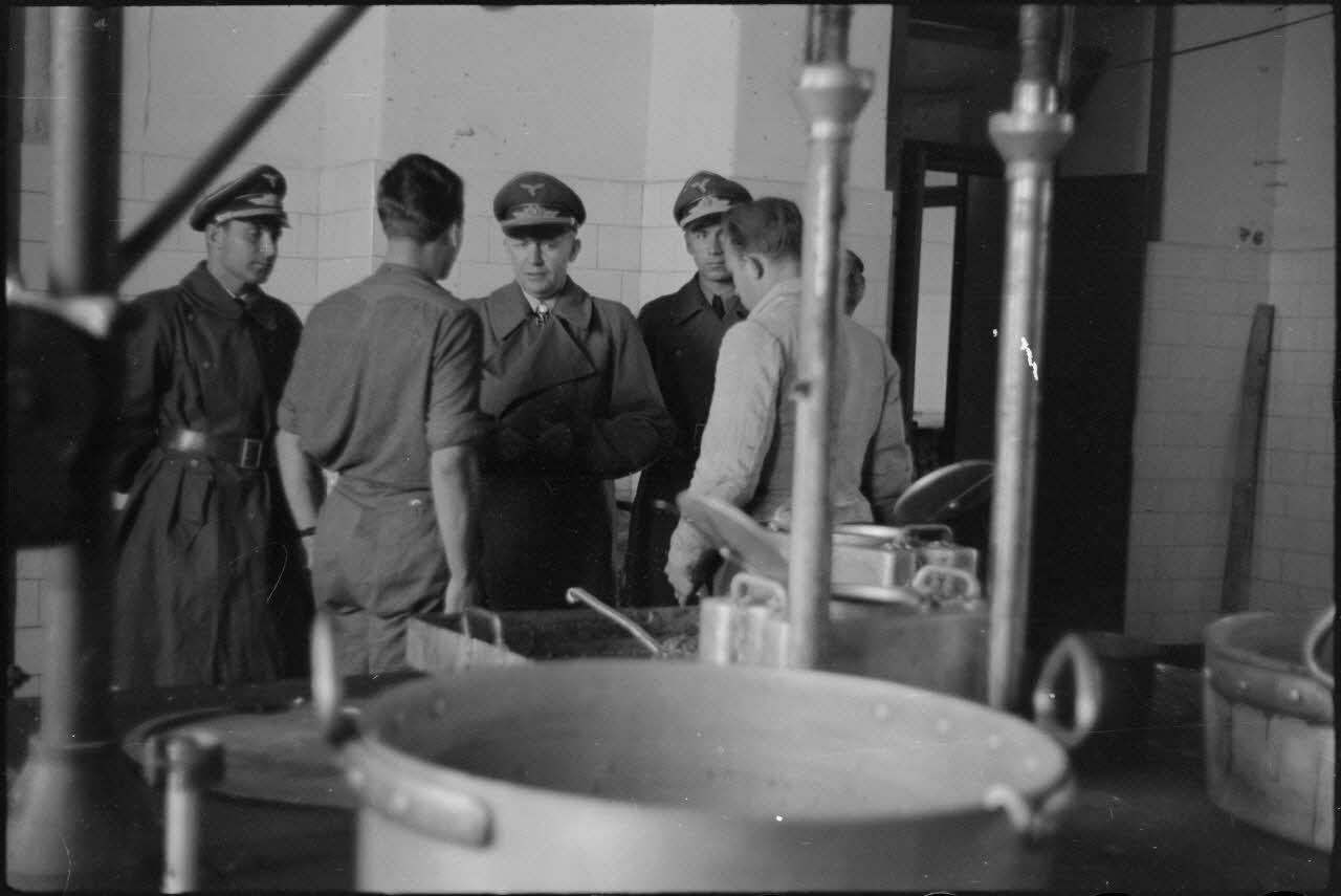 Lors de sa tournée d'inspection auprès du schwere Panzer Abteilung 508, le général Kurt Student goûte à la nourriture dans les cuisines.