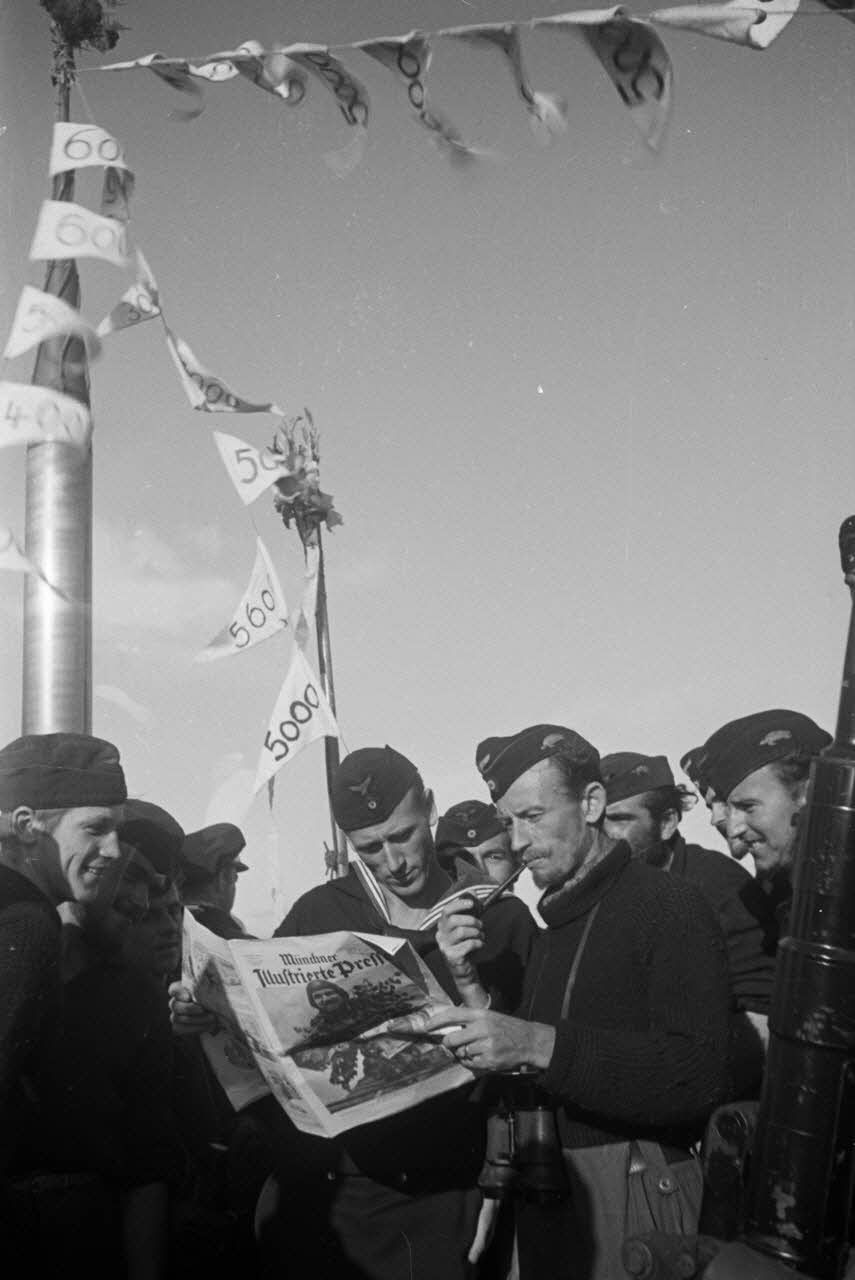 Note : Le reportage est attribué à Heinrich Kramer en raison des autres reportages qu'il réalise sur le retour du sous-marin U-553.