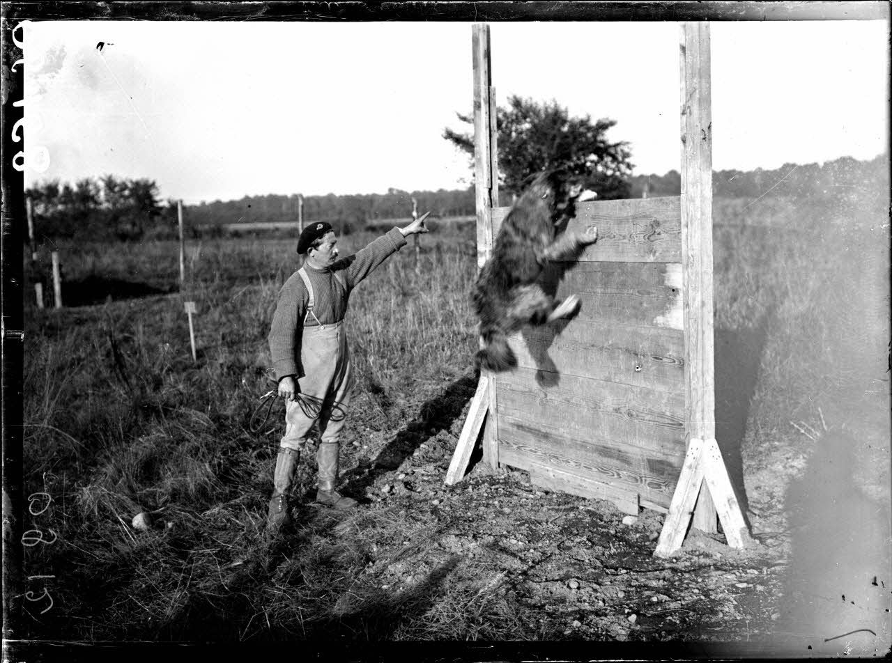 Lure (Haute-Saône). Le chenil de la VIIe armée. Dressage pour le passage d'un obstacle. [légende d'origine]