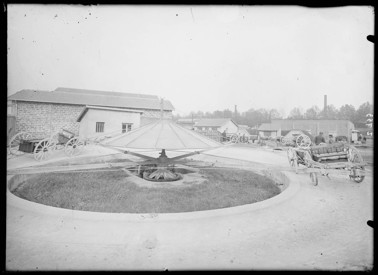 Lyon. Arsenal de la Mouche. Essais des caissons de 75 (manège). [légende d'origine]