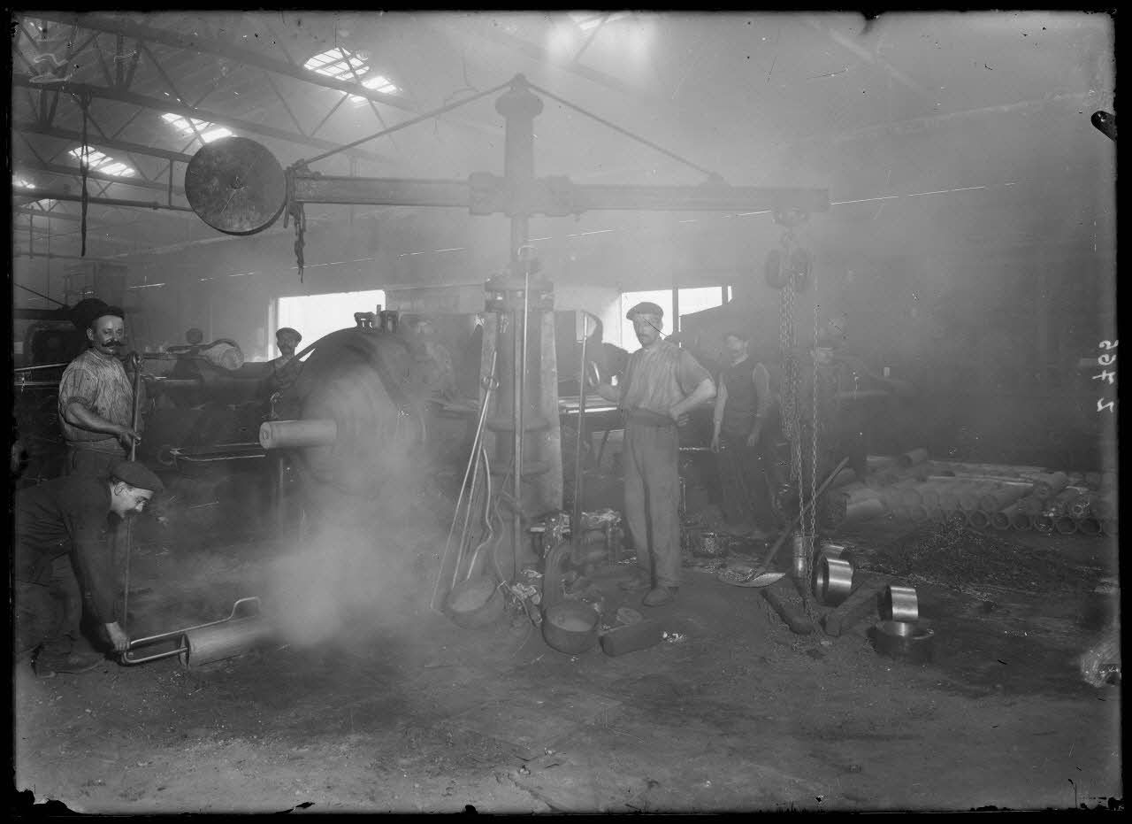 Lyon. Arsenal Perrache. Virage d'un obus de 75. [légende d'origine]