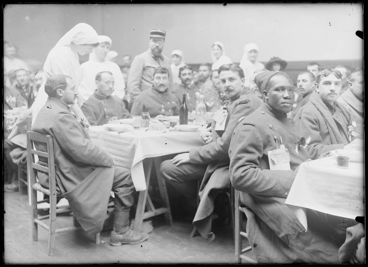Lyon. Hôpital n°17, près gare des Brotteaux. Au réfectoire. Les infirmiers suisses.