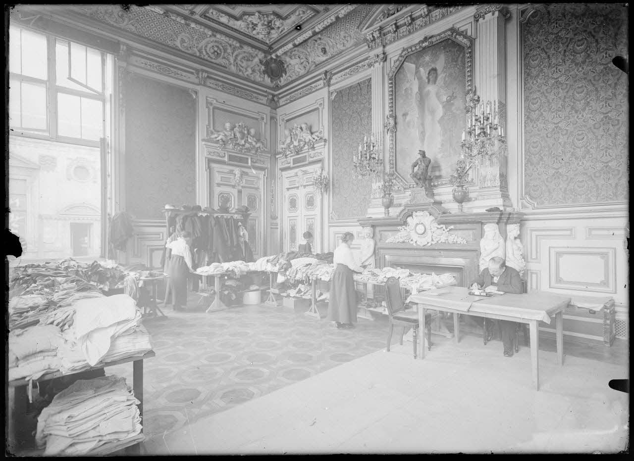 Lyon. Hôtel de ville. Vestiaire des réfugiés. [légende d'origine]