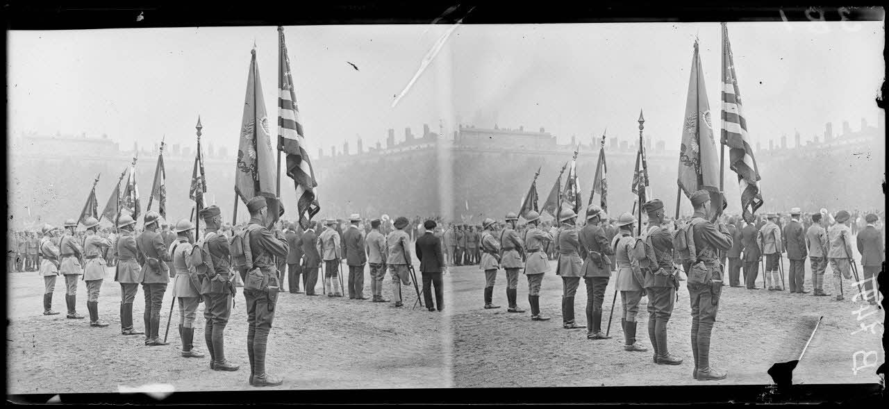 Lyon. Le 14 juillet 1918. Inauguration du pont Wilson. Les troupes américaines arrivent au pont.